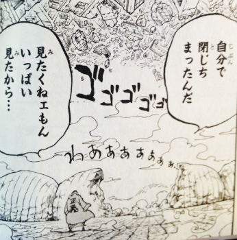 藤虎 目閉じなきゃよかった 何話-すると目があり 目の数3 「クラッカー」逆折り句 短歌 アーマーを 数限りなく 次々と 楽に生み出す 屈指の手技 「カタクリ」句末折り句 短歌 ルフィ負けるか ゴム上回った もちの能力 さえまくり藤虎 から その他へのセリフ79巻 潰れて困る面(ツラ)なら懐にでも仕舞っときなさいや!!!